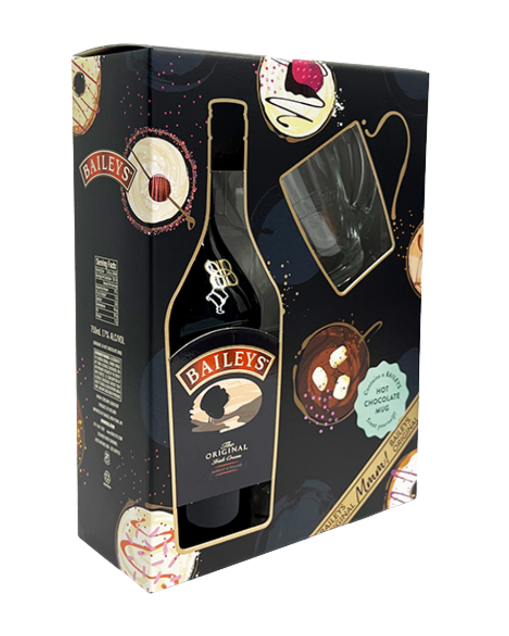 Baileys Original Irish Cream with a glass mug, made for those cooler evenings after a day by the water. Smooth Irish whiskey, fresh cream, cocoa and vanilla - just add hot chocolate, a splash of Baileys, and relax. Includes 700ml bottle.