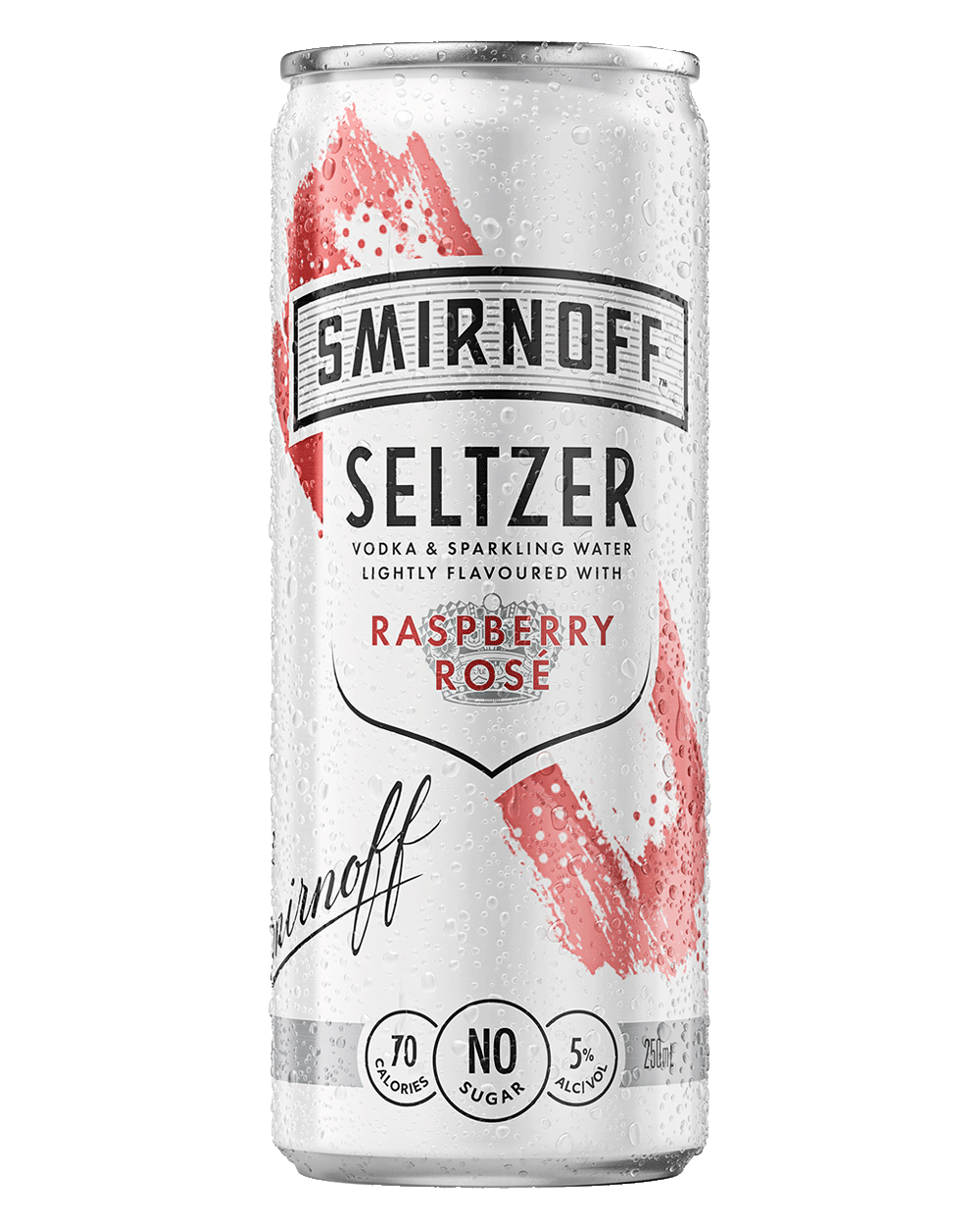 Delight in the refreshing taste of Smirnoff Raspberry Seltzer, where Smirnoff vodka meets lightly flavoured sparkling water. Savour the sweet raspberry aroma, followed by a perfect harmony of raspberry and Rosé flavours, ending with a clean and dry finish. This Smirnoff Seltzer variant offers a light, crisp, and bubbly blend with no sugar and only 70 calories per can. It's the ideal choice for sunny summer days, providing a delicious, low-calorie option for your refreshment.