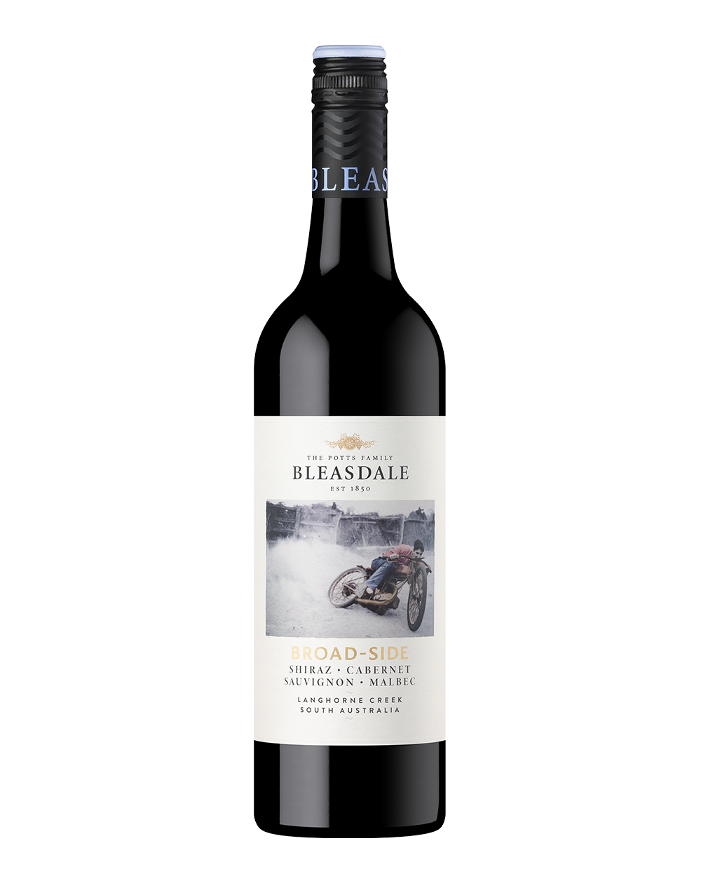 Savour the harmony of Shiraz, Cabernet Sauvignon, and Malbec in the "Bleasdale The Broad-Side". This vibrant blend offers aromas of plum and blackcurrant with a hint of spice. The palate delivers dark fruits, chocolate, and a touch of spice, leading to a lingering finish. Named after Stanley "Sticky" Potts, this wine is perfect for hearty meals or enjoying during a summer storm. A standout from Langhorne Creek, it's a must-try for red blend enthusiasts.